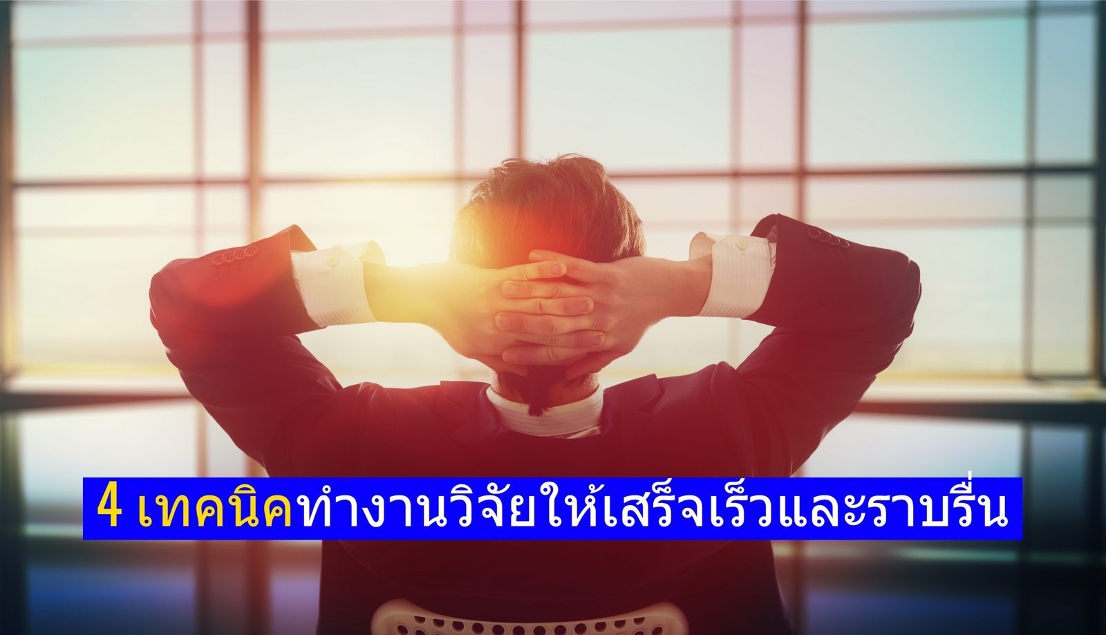 การทำงานวิจัยอาจจะเรียกได้ว่าเป็นแทบทั้งชีวิตนักศึกษาเลยก็ว่าได้ เพราะชีวิตคนเราก่อนเรียนจบก็จะต้องขลุกอยู่กับงานวิจัยตลอด ดังนั้น อย่าปล่อยให้ช่วงเวลาการทำงานผ่านไปวันๆ เลย เรามาดู 4 เทคนิคทำงานวิจัยให้เสร็จเร็วและราบรื่นไปพร้อมกันดีกว่าเพื่อจะได้ทำให้คุณมีความก้าวหน้าในอาชีพการทำงานมากขึ้นไปพร้อมกันด้วย